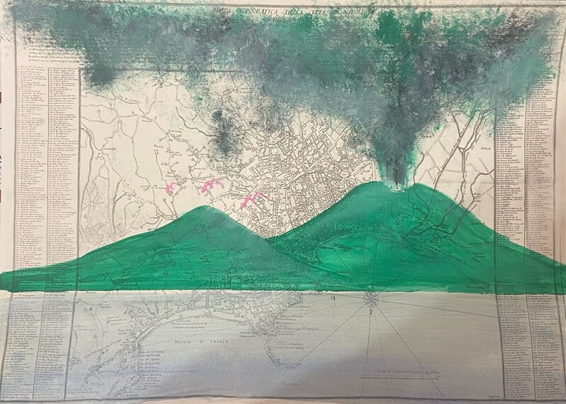 Vesuvio su antica cartina Napoli verde