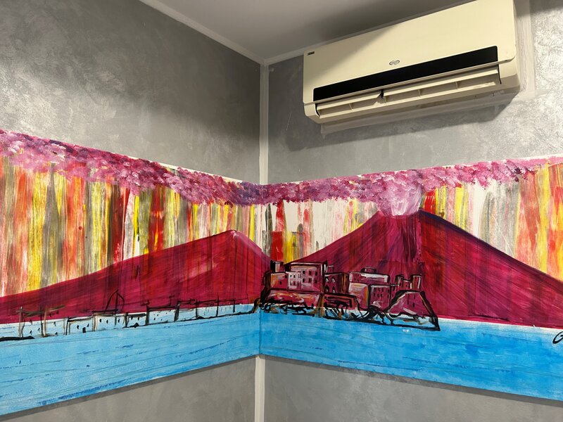 Il dipinto è pensato per essere esposto angolare, le grandi dimensioni avvolgono e ti fanno immergere nella magia del golfo di Napoli.
